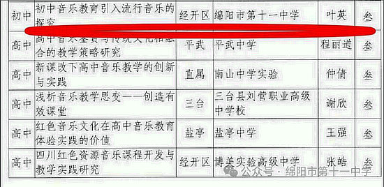 沈小雪老師榮獲綿陽市中小學班主任技能大賽一等獎,葉英老師榮獲綿陽市中小學藝術學科教育教學論文三等獎。