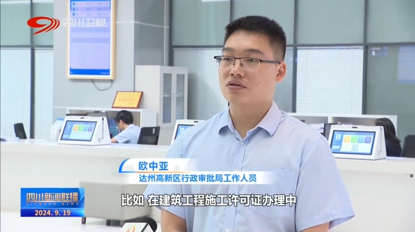 達(dá)州高新區(qū)行政審批局工作人員 歐中亞:比如,在建筑工程施工許可證辦理中,我們將質(zhì)量監(jiān)督備案、安全監(jiān)督備案等事項(xiàng)與施工許可并聯(lián)審批,一次辦結(jié)。整個(gè)過(guò)程由法定的20個(gè)工作日,縮短為一個(gè)工作日。