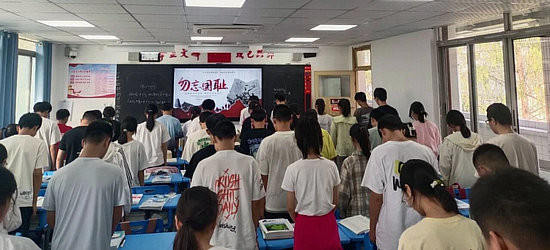廣播聲中,深沉有力的話語向全校師生詳細闡述了“九一八”事變的背景、經(jīng)過和影響。在以“銘記歷史 勿忘國恥”為主題的班會上,班主任用圖片、視頻等形式講述了“九一八”事變的慘烈場景和救亡圖存的英雄事跡。沉重的警報聲響起,師生肅立默哀,深切緬懷在“九一八”事變中遇難的同胞和英勇犧牲的先烈。