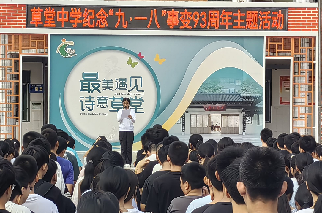 在“九一八事變”93周年即將到來之際,為了引導全體師生銘記抗日戰爭歷史,銘記為民族英雄獻身的烈士,勿忘國恥,繼續奮斗,三臺縣草堂中學舉行了以“銘記歷史 勿忘國恥”為主題的愛國主題升旗儀式。