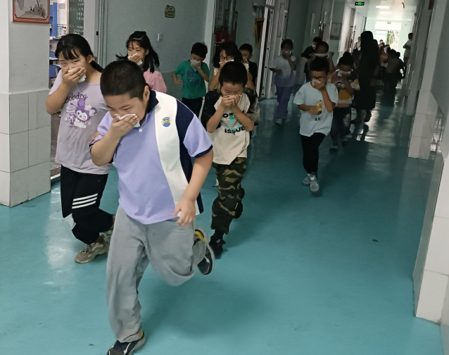 隨著急促的警報(bào)聲響起,演練正式拉開(kāi)序幕。各班班主任立即指揮學(xué)生紛紛貓著腰,用濕毛巾或濕巾捂住口鼻,保持鎮(zhèn)定,按照預(yù)設(shè)的逃生路線,有序從教室前后門(mén)撤離。學(xué)生們?cè)诶蠋焸兊囊龑?dǎo)下,步伐穩(wěn)健,秩序井然,展現(xiàn)出良好的應(yīng)急疏散能力。短短的58秒,全校師生全部安全撤離到指定的安全區(qū)域。