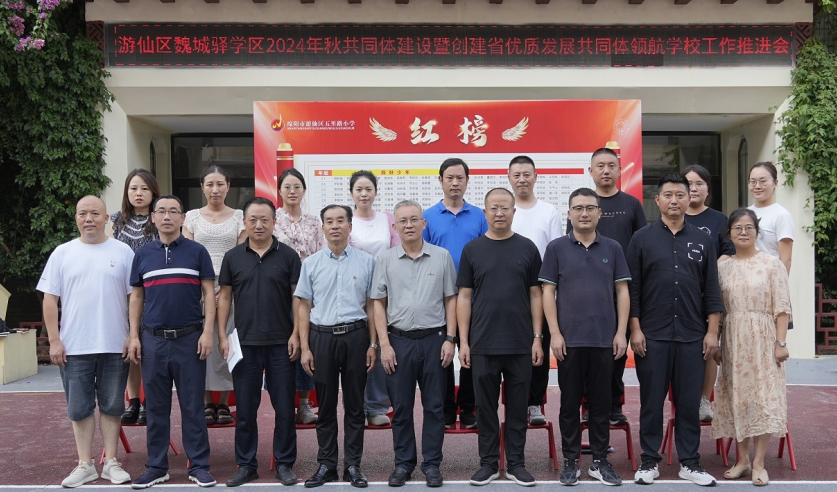 為了謀劃好學區協同發展,踐行好“共建、共享、共融、共生、共創”的總目標,建設好“五位一體”的學區模式,9月19日下午,游仙區魏城驛學區2024年秋共同體建設暨創建省優質發展共同體領航學校工作推進會在五里路小學舉行。領航學校五里路小學副校長王曉勇主持會議,學區五校黨支部書記、校長、各校分管共同體建設的相關領導參加會議。會議主要就2024年秋學區工作要點、《四川省義務教育優質發展共同體領航學校遴選標準》創建分工及評價指標等三方面進行熱烈地研討。