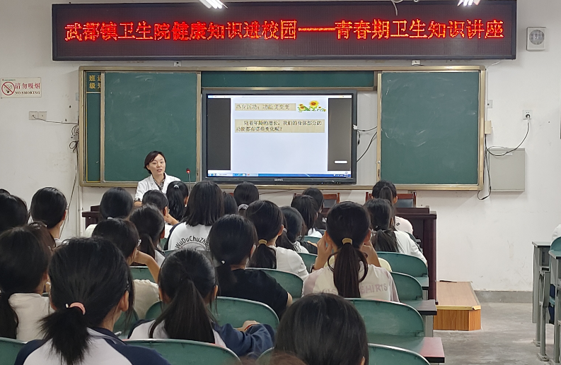 此次活動邀請了江油市武都鎮(zhèn)中心衛(wèi)生院的兩位專業(yè)醫(yī)生為同學(xué)們進(jìn)行講解。兩位醫(yī)生借助精美的ppt課件,以生動有趣的方式,從生理和心理兩個(gè)方面入手,為同學(xué)們揭開了青春期的神秘面紗。