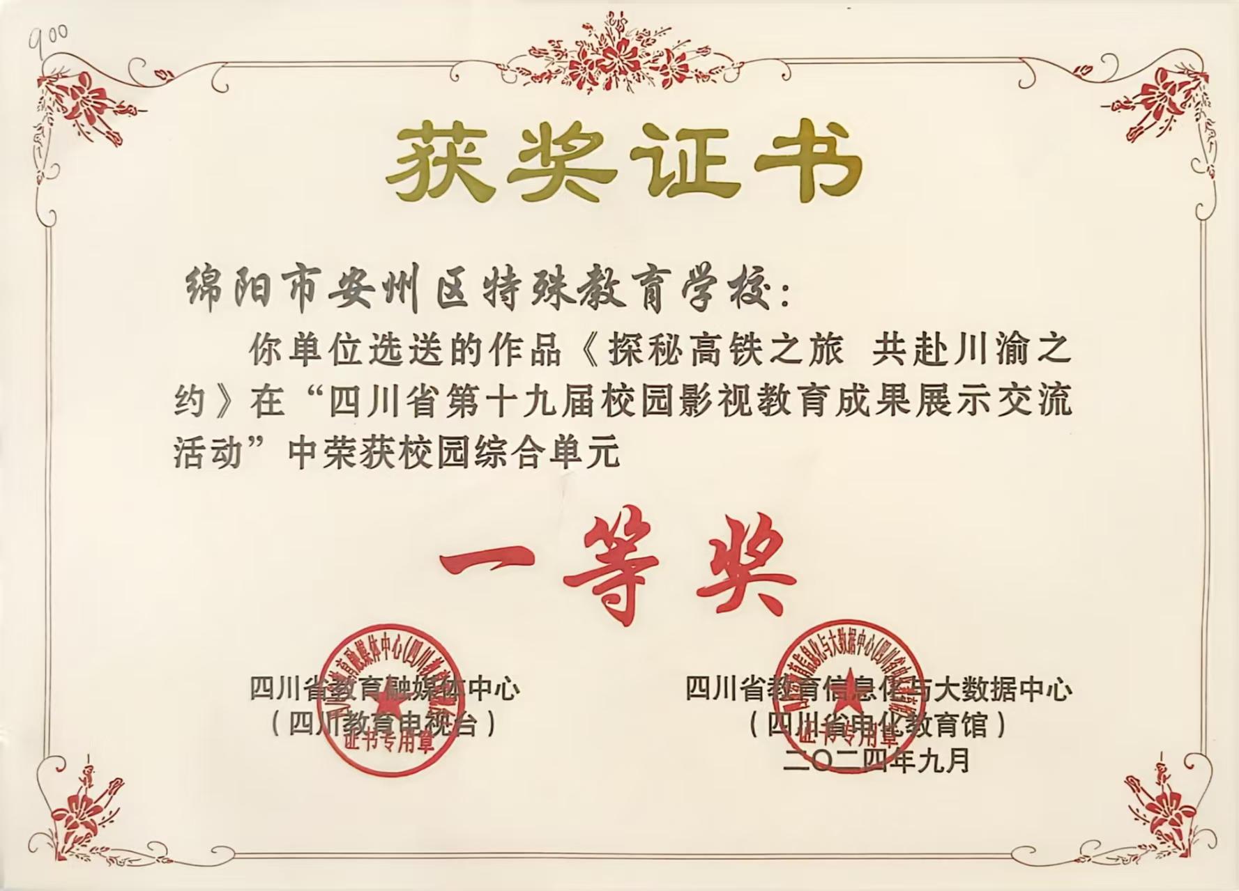近日,在四川省第十九屆校園影視教育成果展示交流活動中,安州區(qū)特殊教育學校推送的2024年秋校園影視教育成果作品榮獲兩個一等獎和兩個三等獎。