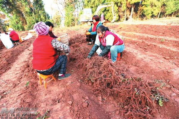 以往農閑時節,村民們大多無事可做,如今在唐永平的丹參地里干活,平均每天能掙80元左右。“一年大約需勞動力千余人次。”唐永平說,村里的老人、婦女紛紛加入勞作隊伍,在田間揮灑汗水的同時,也實實在在將收入裝進了口袋。