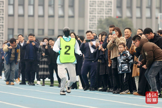 比賽開始,運動員快速起跑,彎道加速,準備交接,機器人起跑,加速,沖線……在現場觀眾的加油聲中,運動員與機器人創造了一項新的具有特殊意義的紀錄。