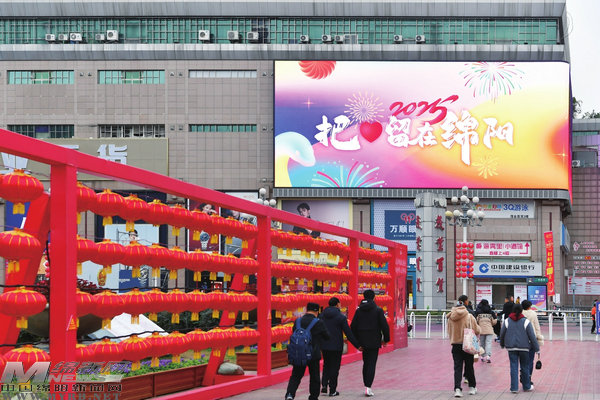 除夕是中國人團(tuán)圓的日子,綿陽的大街小巷張燈結(jié)彩,紅色的燈籠和福字隨處可見,整個城市裝扮得紅紅火火,新春喜慶的氛圍如漣漪般層層漾開。