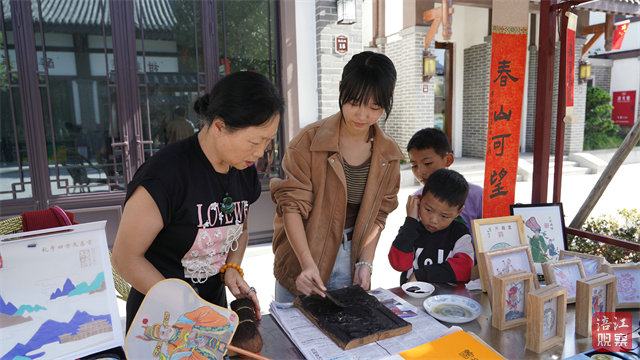 川劇《變臉》現(xiàn)場(chǎng),演員著華服、戴精飾,甩頭舞扇間臉譜瞬變,引觀眾驚嘆;被單戲以桌、竹竿、布搭簡(jiǎn)易戲臺(tái),表演者變聲腔演生旦凈末丑,講述精彩故事。木刻年畫傳習(xí)所內(nèi),傳承人羅智婉演示 “木刻上色” 套印技法,游客可親手制作主題年畫、拓印 “文昌巡游圖”。