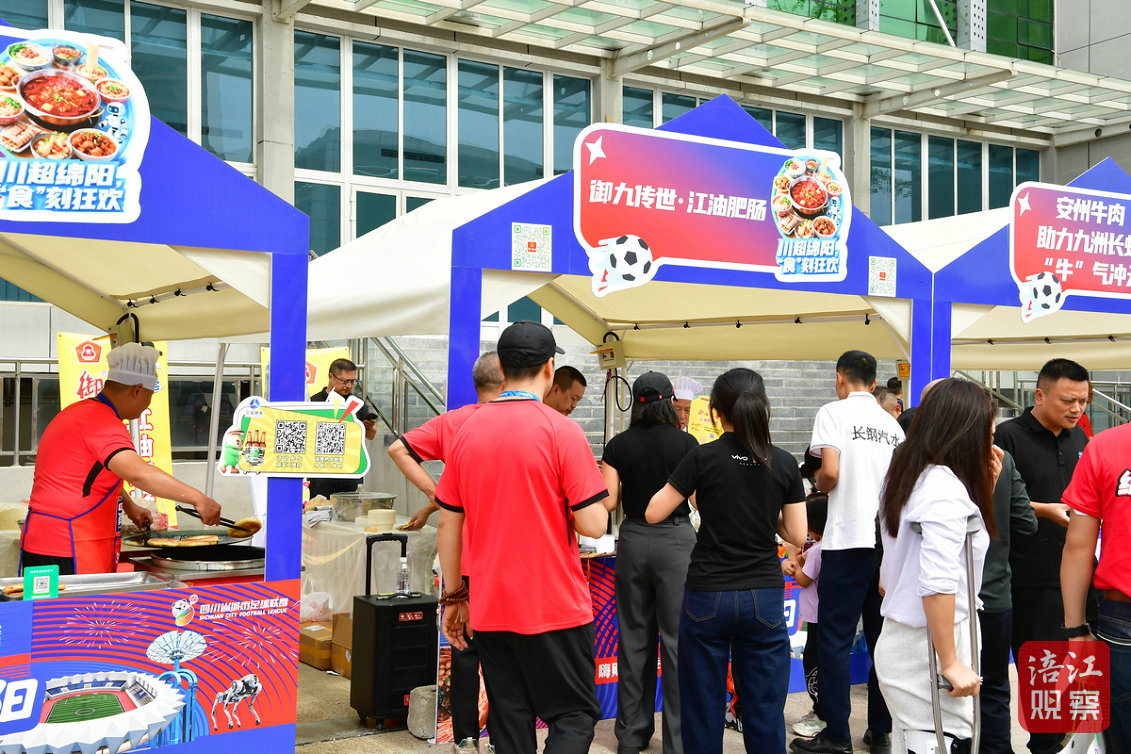 川超賽事的熱度,成為拉動綿陽消費的“催化劑”。在三臺縣體育場外,依托川超賽事打造的“樂享川超”專屬消費市集,設置助威產(chǎn)品、美食品鑒、互動體驗、綿陽好物四大功能區(qū),65個展位涵蓋農(nóng)特、非遺、家電、鞋服等品類,實現(xiàn)“觀賽+消費”無縫銜接。同時,準備了花式足球表演、NPC互動及T臺秀等消費活動,球迷憑票根可在餐飲、住宿、購物等多領(lǐng)域享受專屬優(yōu)惠。
