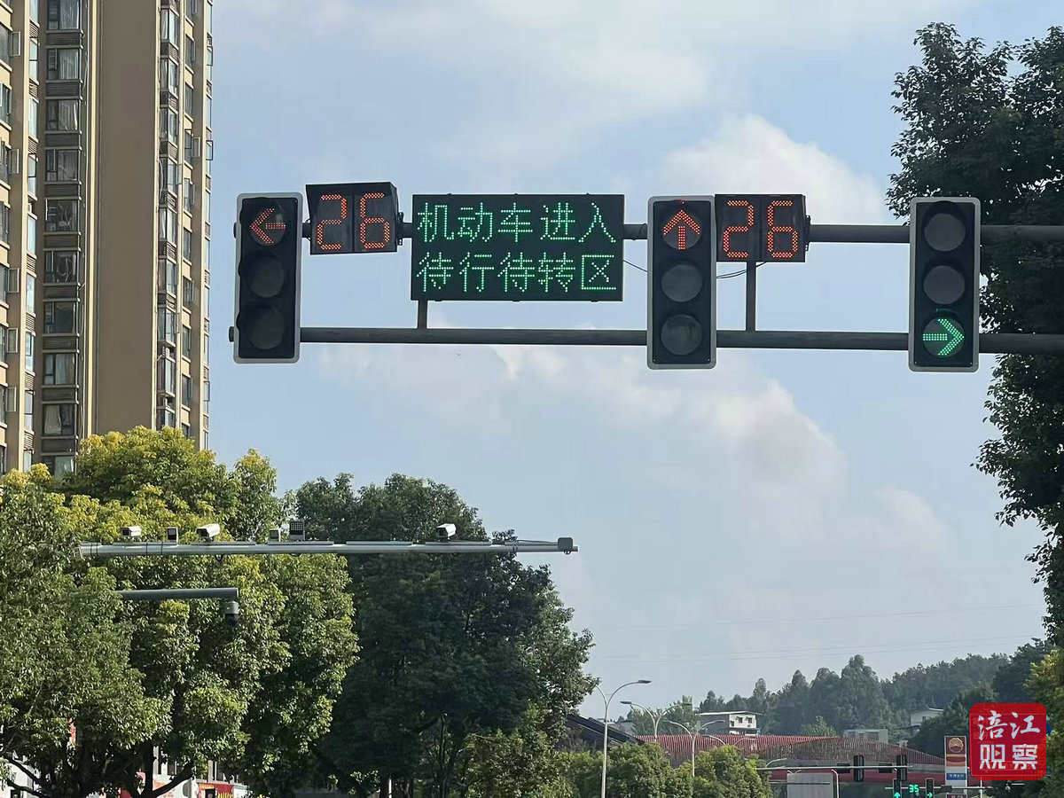 ◆二是在北進(jìn)口施劃待行待轉(zhuǎn)區(qū)并安裝LED提示屏,引導(dǎo)車輛提前進(jìn)入待行區(qū)域,提升路口通行效率;
