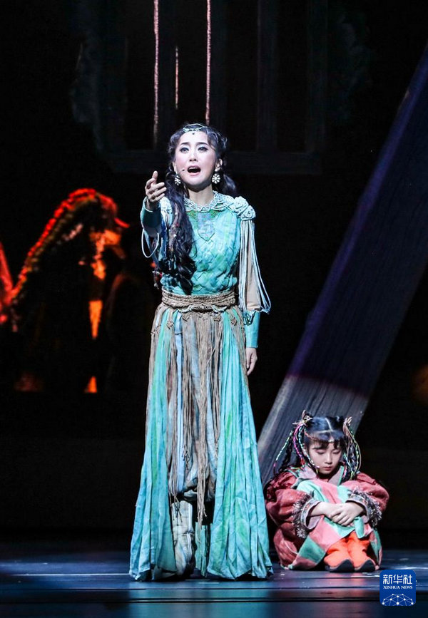 10月10日晚,演員在甘肅大劇院表演原創音樂劇《米薇的敦煌》。