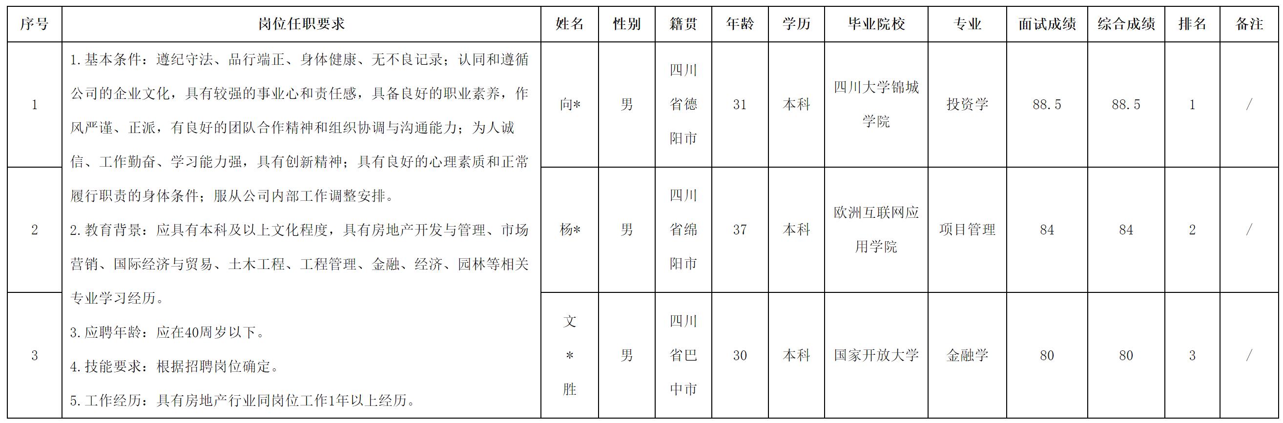 根據四川波鴻實業有限公司發布的招聘公告及招聘相關規定,經測試等程序,現將面試成績予以公示。