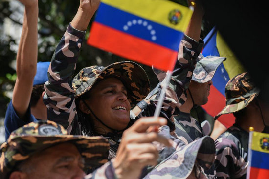 10月4日,在委內瑞拉首都加拉加斯的玻利瓦爾廣場,玻利瓦爾民兵組織成員參與全國特別軍事演習。新華社發(fā)(馬科斯·薩爾加多攝)