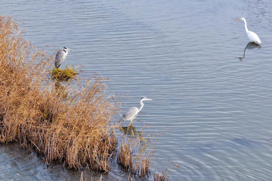 10月14日在黑龍江省同江市三江口國家濕地公園拍攝蒼鷺和白鷺。
