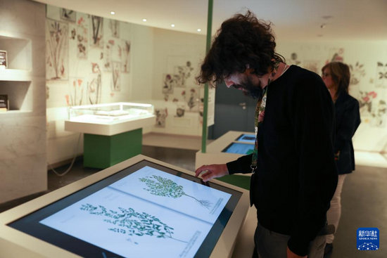 10月16日,在意大利羅馬,嘉賓在聯合國糧食農業博物館觀看植物圖鑒。