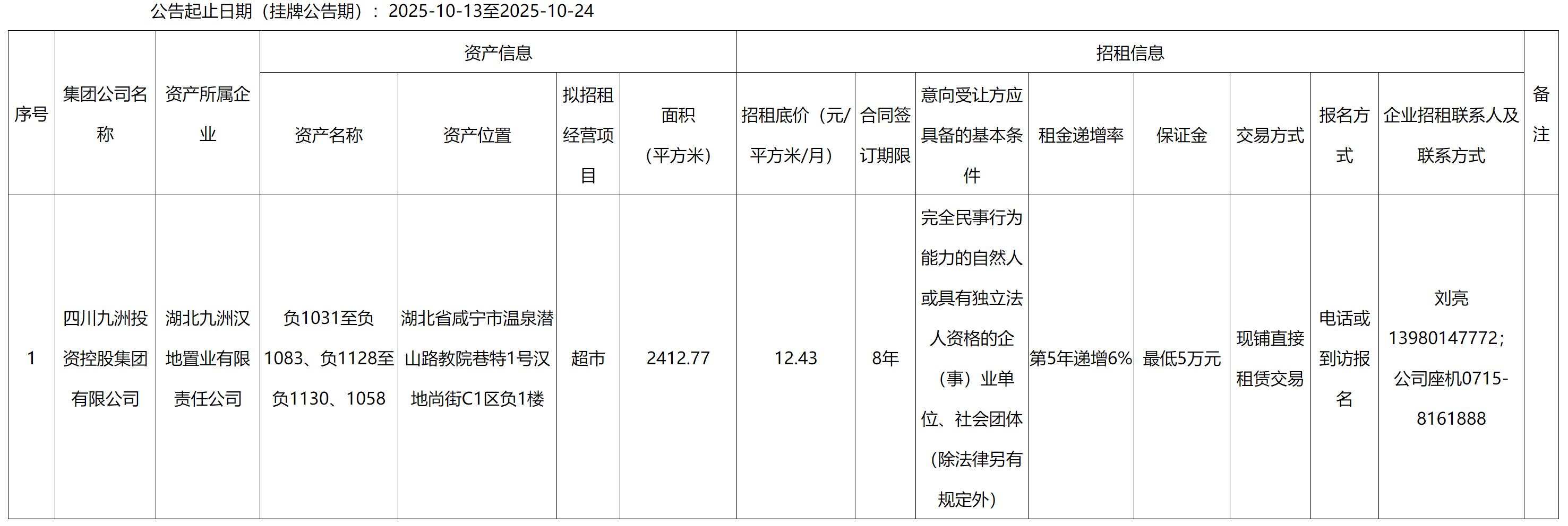 四川九洲千城商業管理有限公司湖北項目部漢地尚街商鋪出租公告