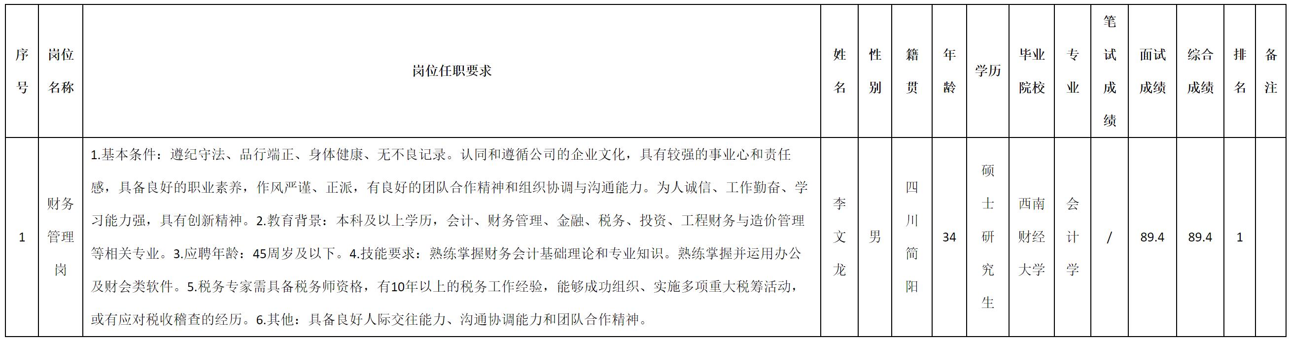 根據四川九洲投資控股集團有限公司發布的招聘公告及招聘相關規定,現將測試成績予以公示。