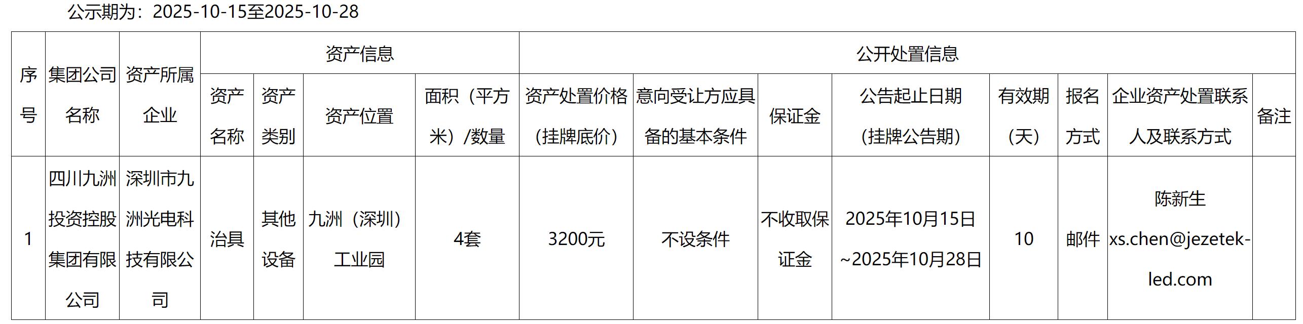 深圳市九洲光電科技有限公司治具處置公告