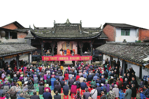 四川省“百場百戲”川劇展演走進江油重華古鎮(zhèn),演出現(xiàn)場座無虛席。