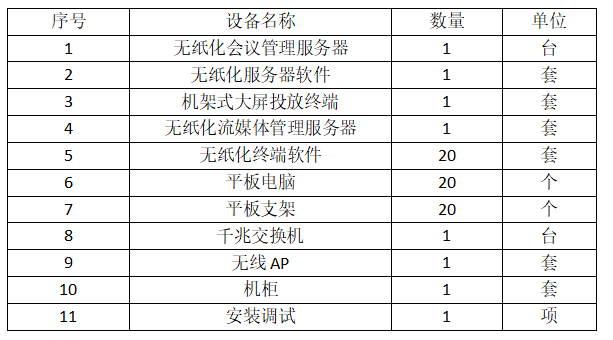 為持續推動節約型機關創建,實現辦會安全可靠、智慧高效、經濟環保,現需采購一批無紙化會議室配套設施設備,用于日常會務使用。