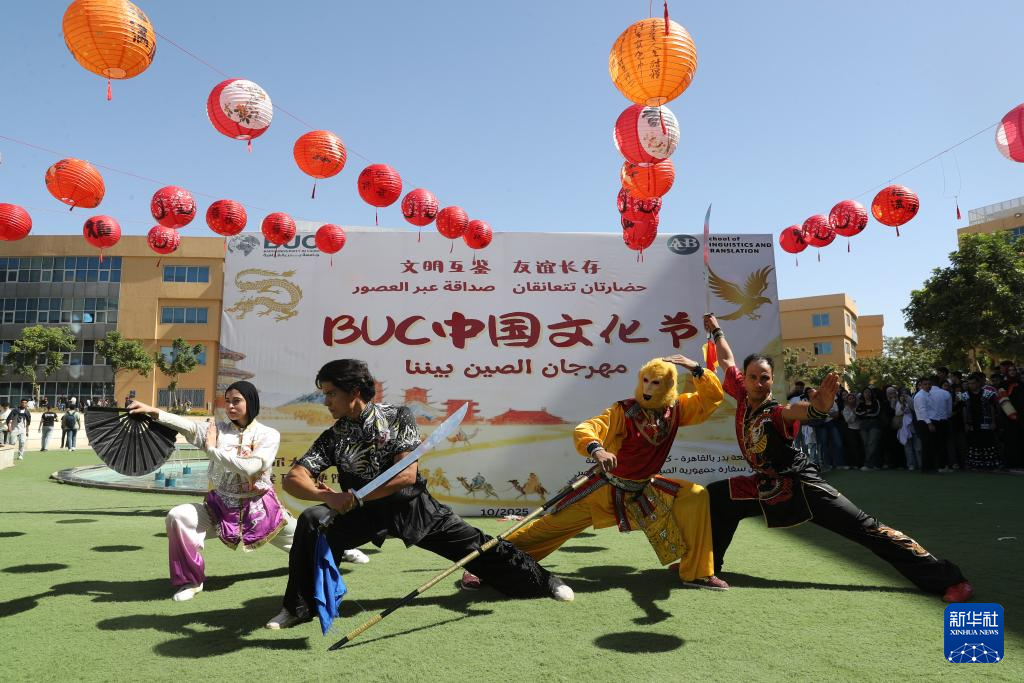 10月20日,在埃及開羅,表演者在開羅巴德爾大學舉辦的中國文化節上展示中國武術。