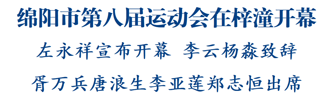 10月21日下午,“綿商銀行杯”綿陽市第八屆運動會在梓潼開幕。省委常委、市委書記左永祥出席開幕式并宣布開幕。市委副書記、市長李云,省體育局副局長楊淼出席開幕式并致辭。成都體育學院黨委副書記、院長胥萬兵,市人大常委會主任唐浪生,市政協主席李亞蓮,市委常委、科技城管委會主任鄭志恒出席開幕式。