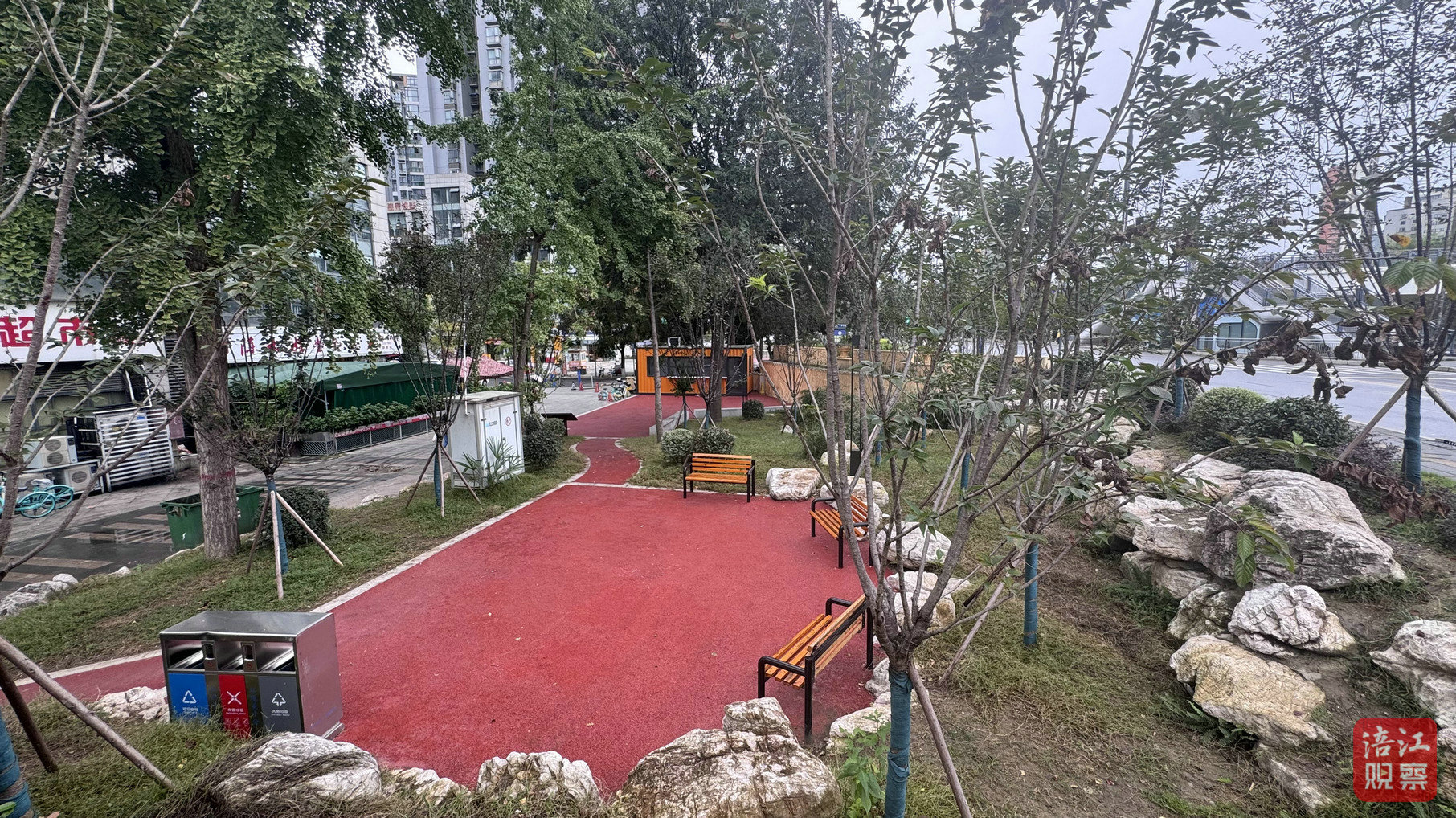于是,這個占地僅1600平方米的小天地,漸漸成了社區的天然客廳:長椅上,奶奶們的目光追隨著奔跑的孫兒,圈出安全的嬉戲區;健身器材旁,鄰居們在運動中閑聊家常。約1300平方米的景觀植物錯落配置,營造出一個層次豐富、色彩鮮明的迷你生態園。