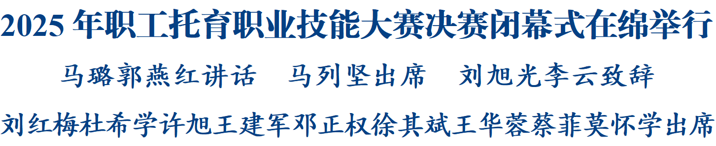 10月23日,以“‘托’成長希望·‘育’美好未來”為主題的2025年職工托育職業技能大賽決賽閉幕式在綿舉行。全國總工會副主席、書記處書記、黨組成員馬璐講話并宣布閉幕,國家衛生健康委副主任、黨組成員郭燕紅講話,全國婦聯書記處書記、黨組成員馬列堅出席,省政協副主席劉旭光,市委副書記、市長李云致辭。