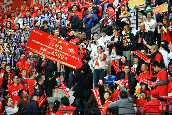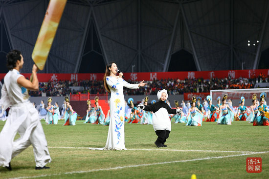 比賽結(jié)束后,近300名演職人員與球員一起和現(xiàn)場(chǎng)觀眾進(jìn)行表演互動(dòng),在歌曲《相親相愛(ài)》的溫暖旋律中,為本場(chǎng)比賽畫(huà)上圓滿句號(hào)。