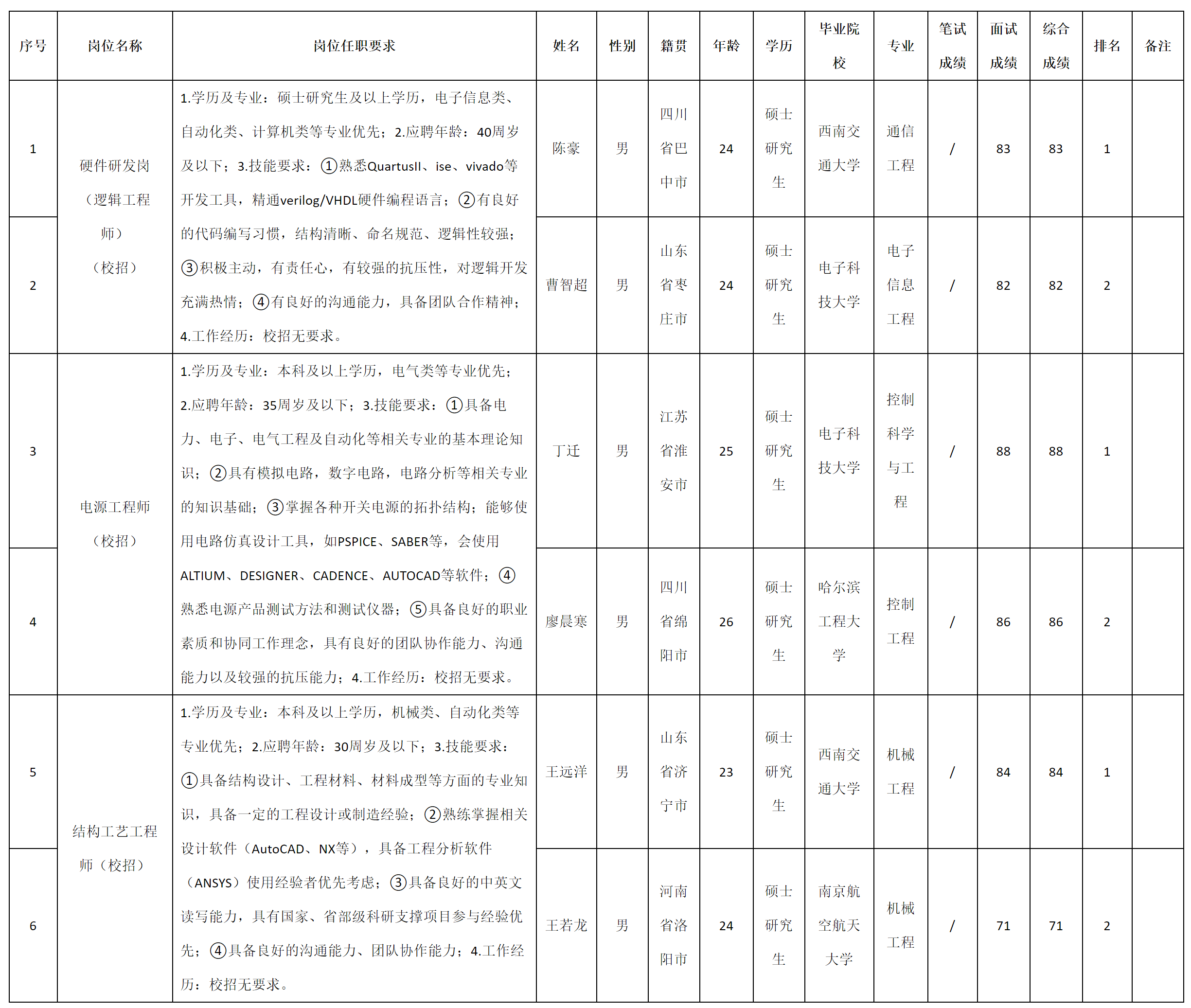 根據(jù)四川九洲電器集團(tuán)有限責(zé)任公司發(fā)布的招聘公告及招聘相關(guān)規(guī)定,現(xiàn)將測(cè)試成績(jī)予以公示。