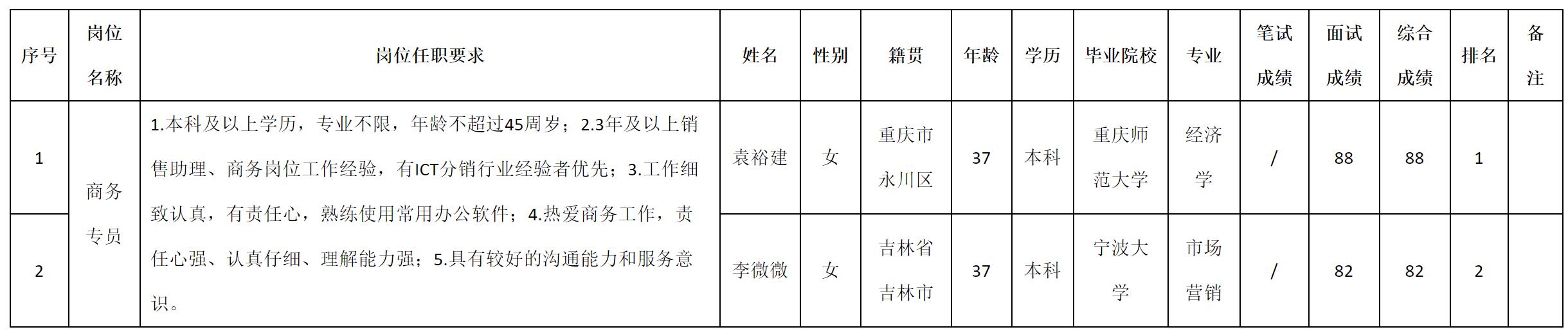 四川科瑞軟件有限責任公司關于招聘商務專員測試成績的公示