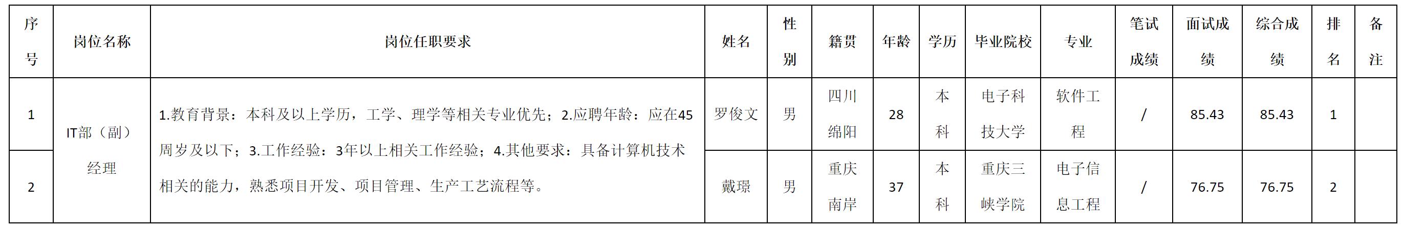根據四川九州電子科技股份有限公司發布的招聘公告及招聘相關規定,現將測試成績予以公示。