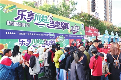 在“川超”阿壩賽場外,綿陽美食文化展人流如織。視覺綿陽資料圖片
