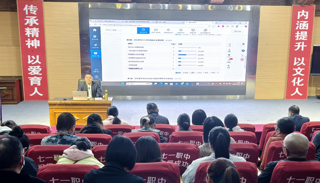 綿陽新聞網訊 為了積極響應教育數字化轉型號召,切實提升教師人工智能應用能力與信息素養,10 月23 日,北川羌族自治縣“七一”職業中學特邀綿陽職業技術學院馮德勇副教授,為全校教師帶來《AI教師生產力倍增計劃:60分鐘極速破局》的專題講座,以 “理論+實操” 的沉浸式培訓,助力教師解鎖人機協同教學新范式。