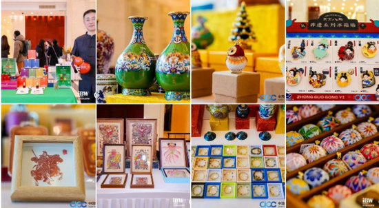 活動現場設置室內外展區,集中展示多項非遺的創新產品和聯名展品,并通過實操非遺制作,讓各國嘉賓近距離感受非遺魅力。(主辦方供圖)