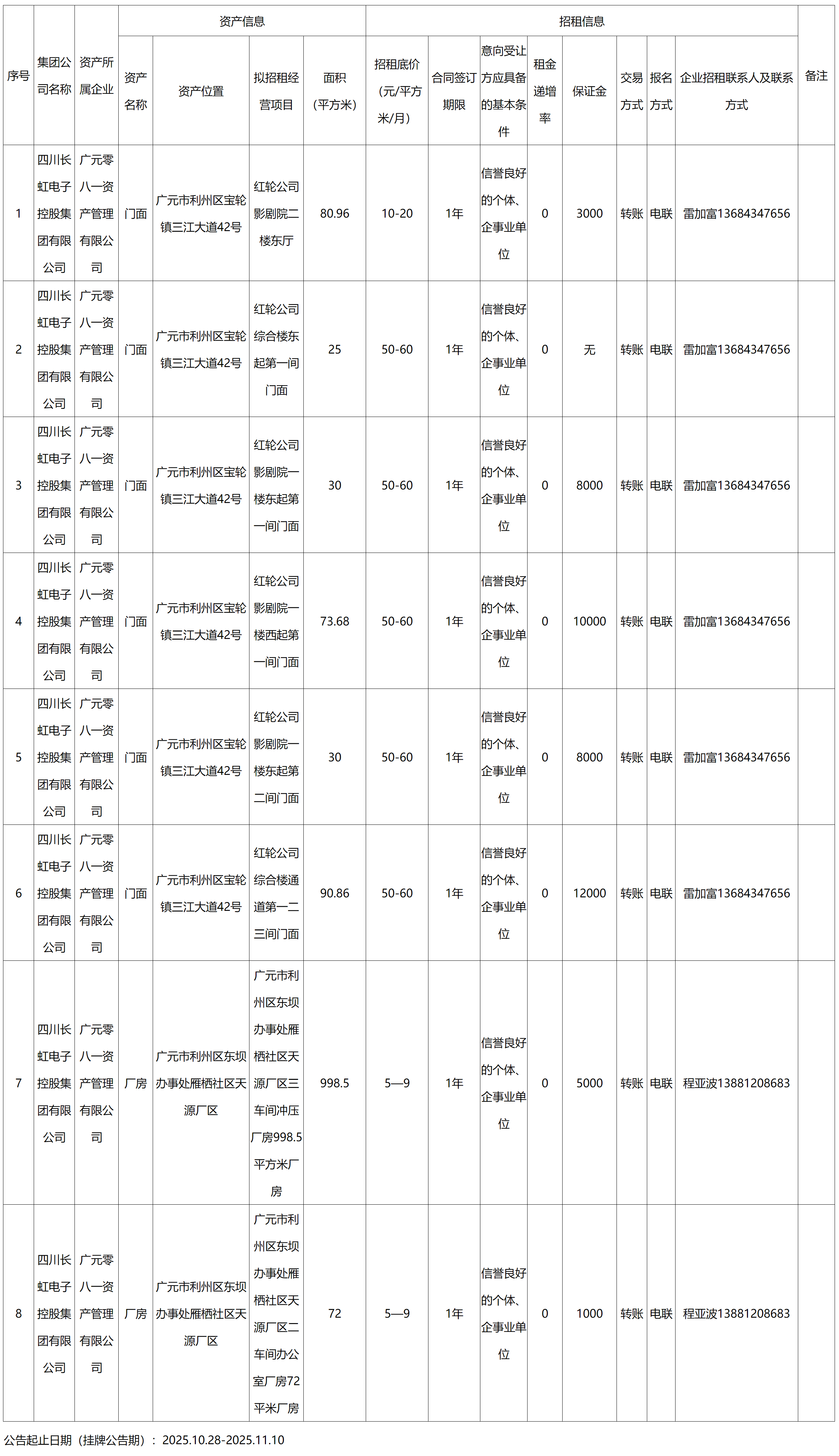 廣元零八一資產(chǎn)管理有限公司資產(chǎn)出租公告