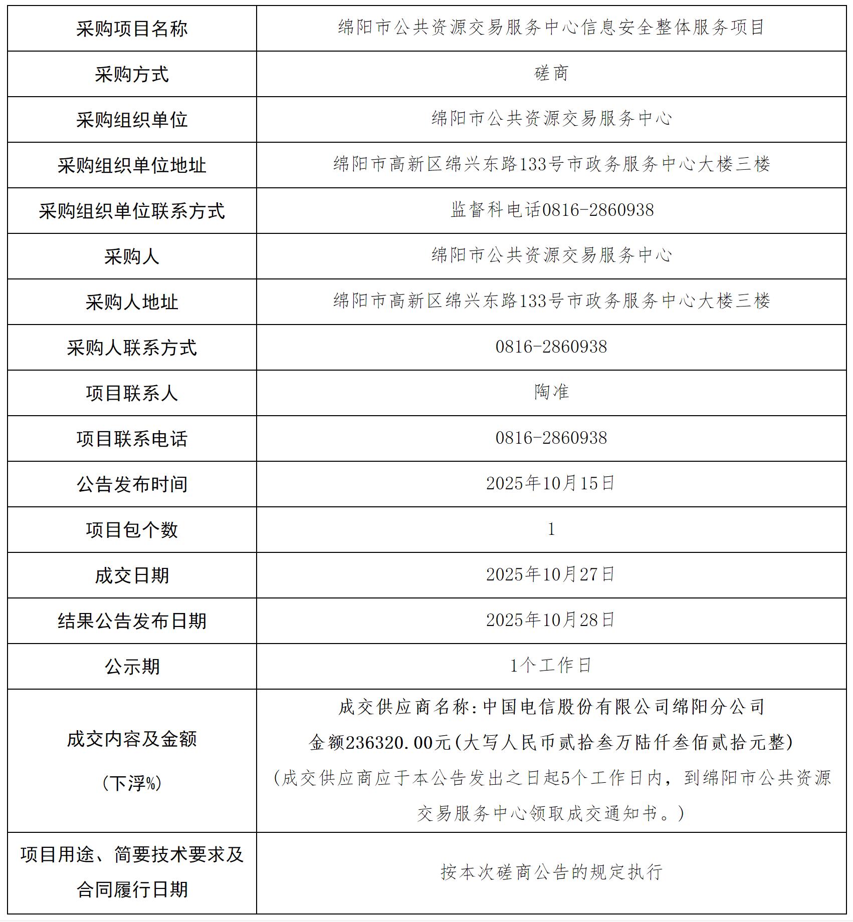 綿陽市公共資源交易服務中心關于“信息安全整體服務”項目采購結果的公告