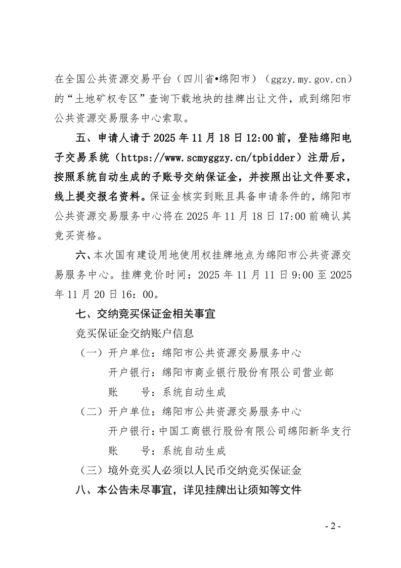 綿陽(yáng)市國(guó)有建設(shè)用地使用權(quán)掛牌出讓公告(綿經(jīng)開(kāi)管公告〔2025〕11號(hào))