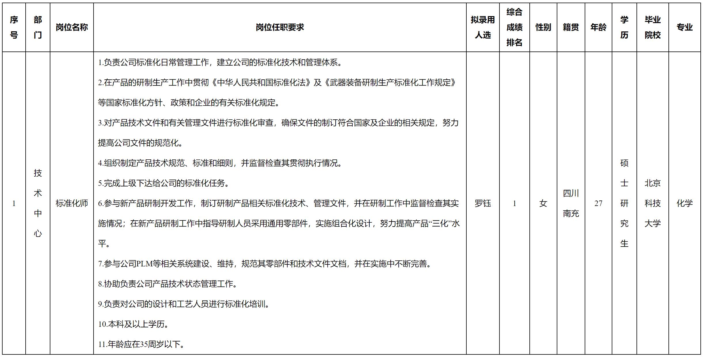 根據(jù)四川長虹電源股份有限公司發(fā)布的招聘公告及招聘相關(guān)規(guī)定,經(jīng)測試、考察、體檢等程序,擬錄用羅鈺同志到我司工作,現(xiàn)予以公示,具體情況如下:
