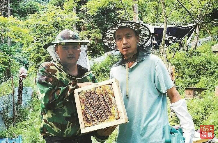 “蜜蜂博士”張玉波(右)到農戶的蜂場指導農戶取蜜