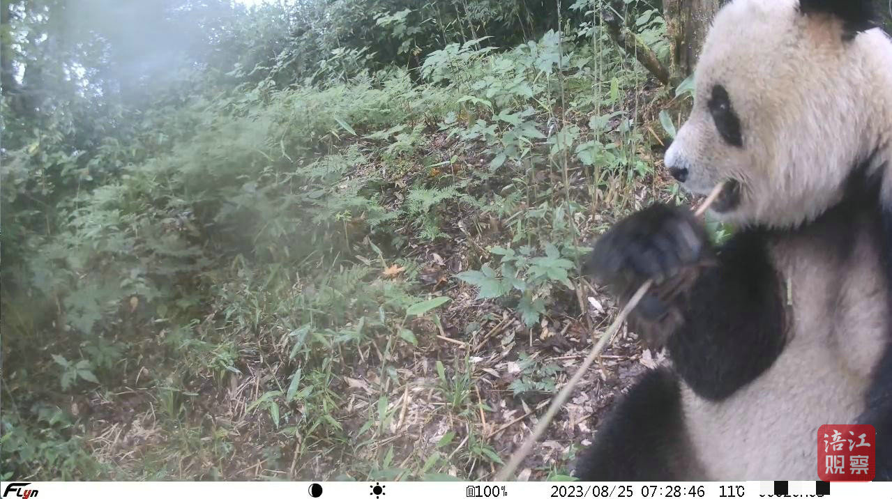 大熊貓國家公園平武片區紅外相機拍攝的大熊貓吃竹子