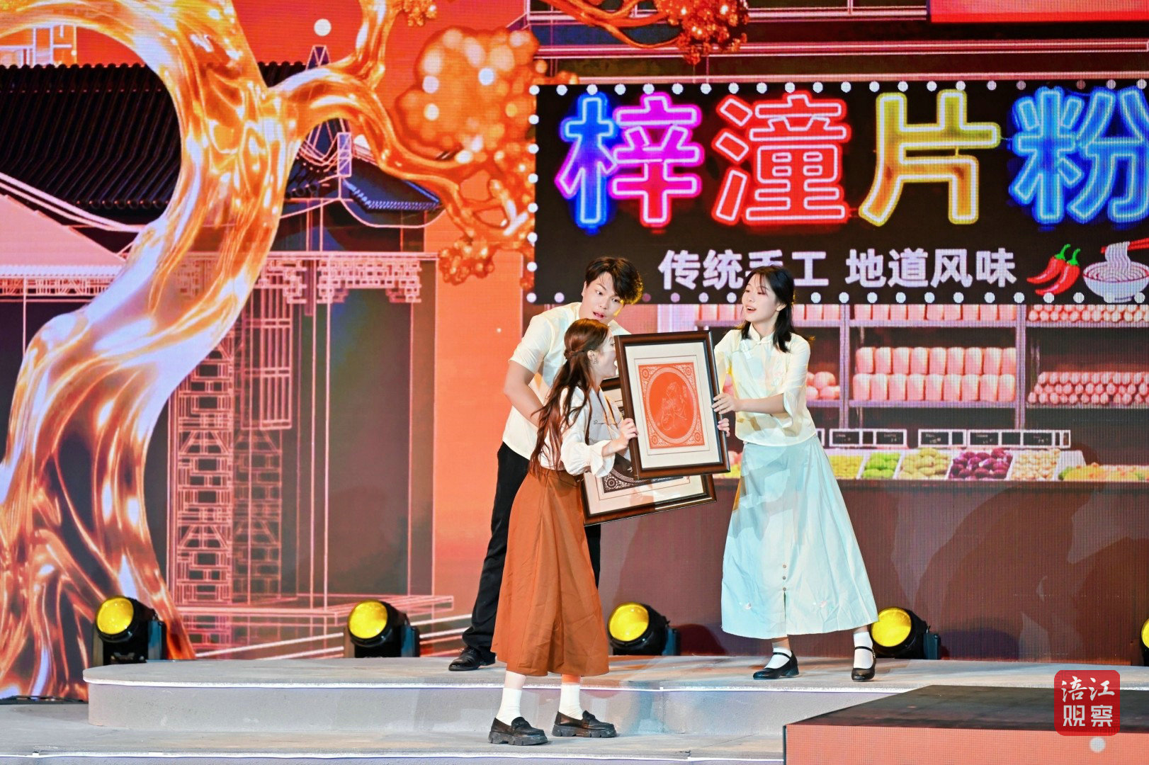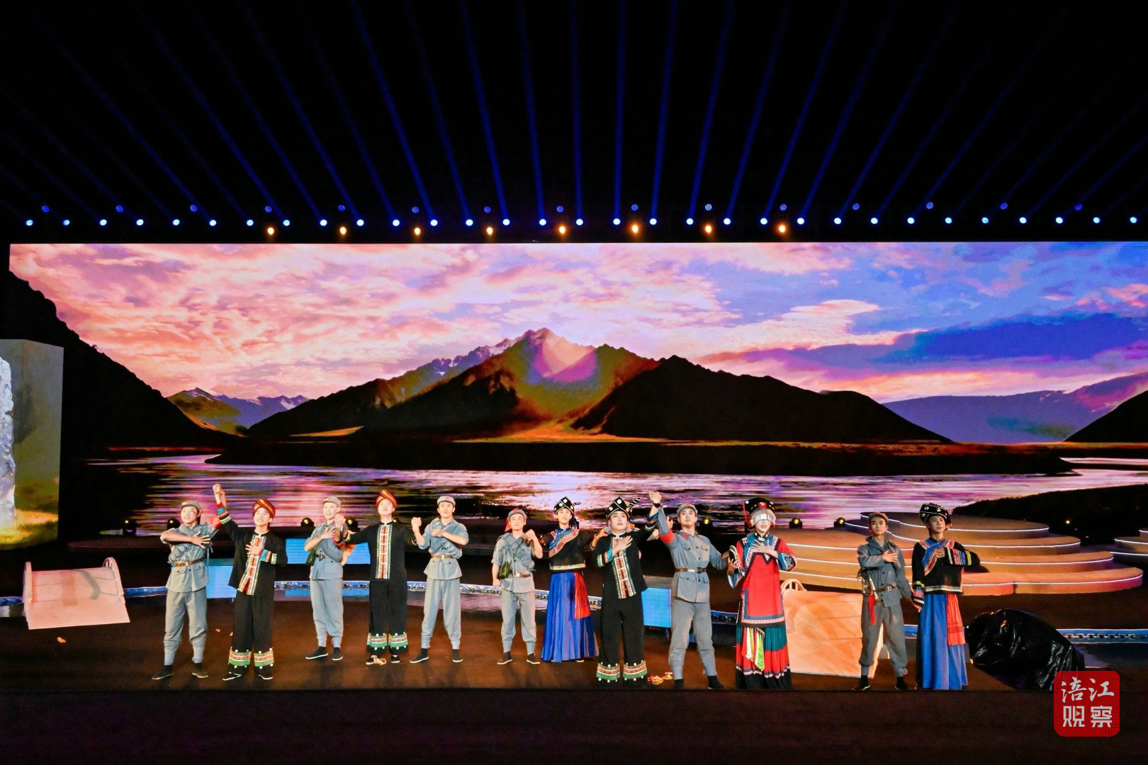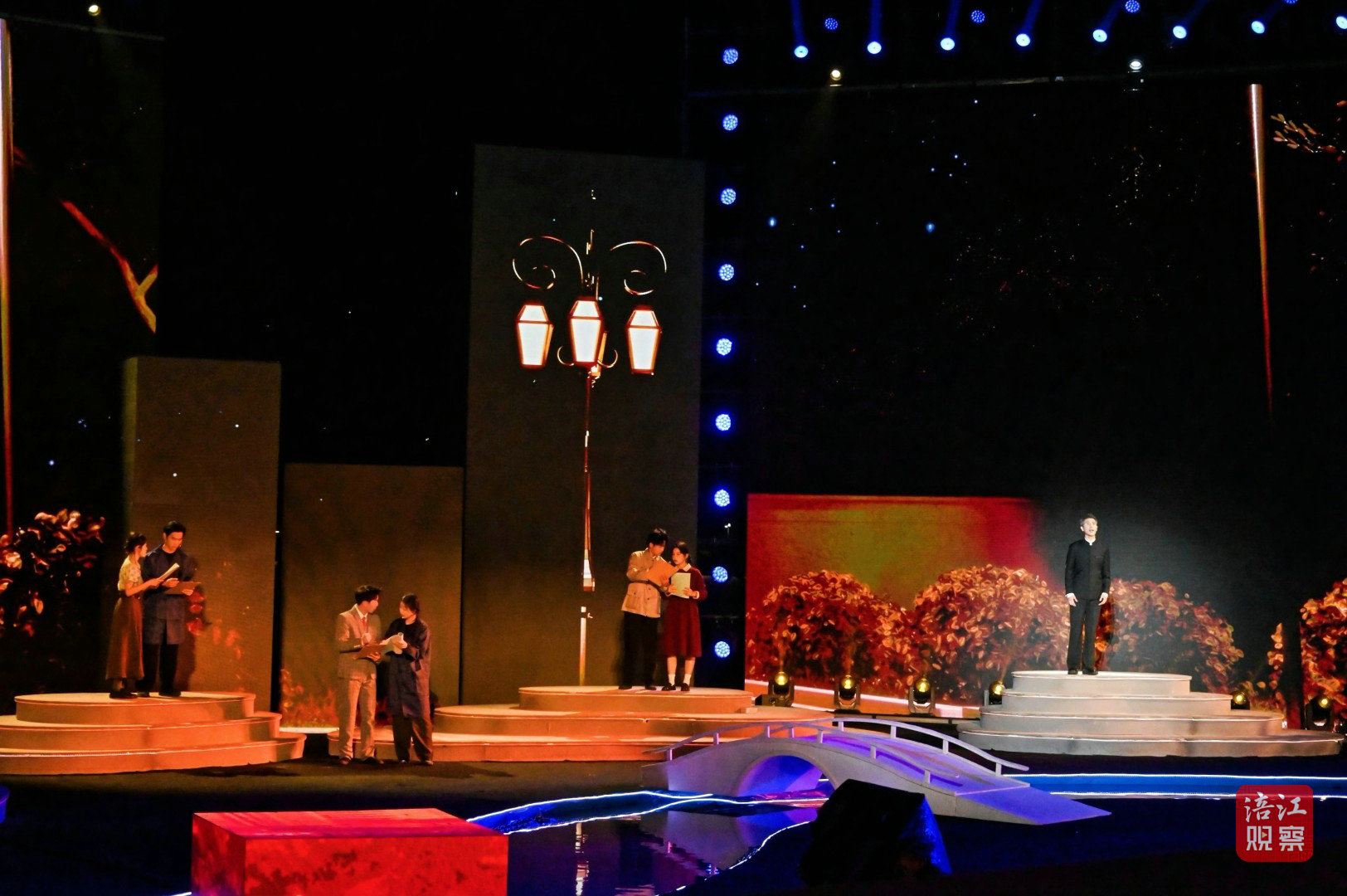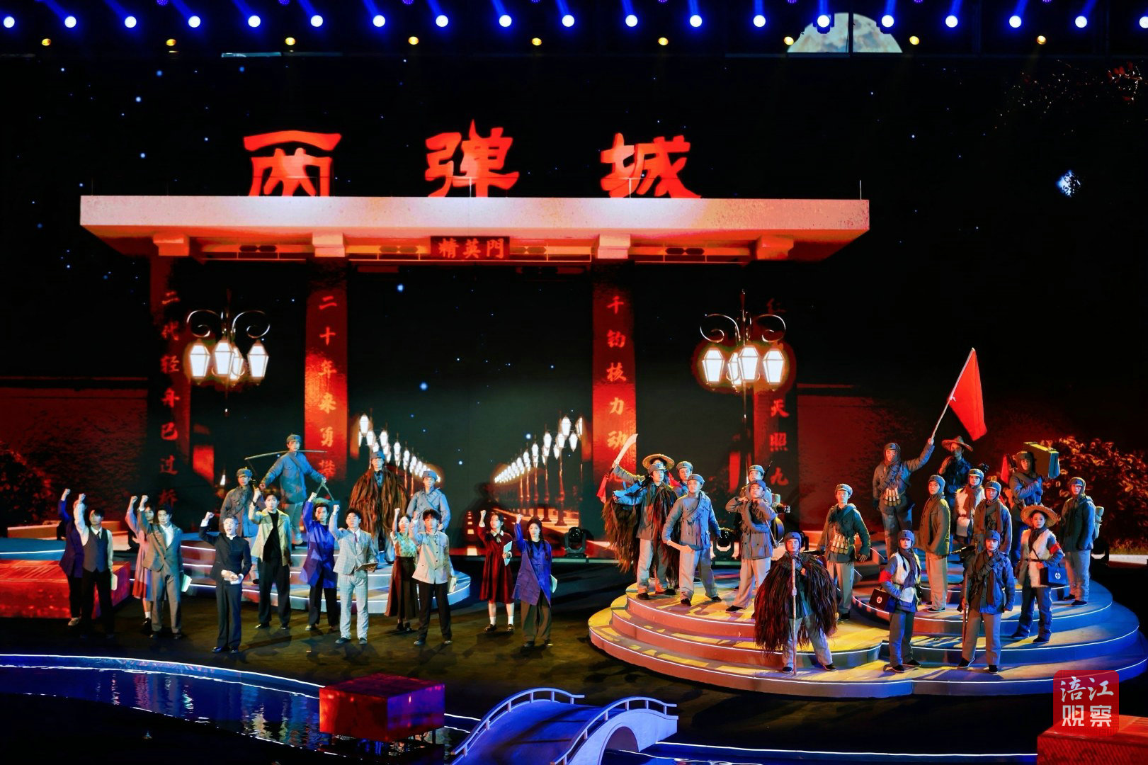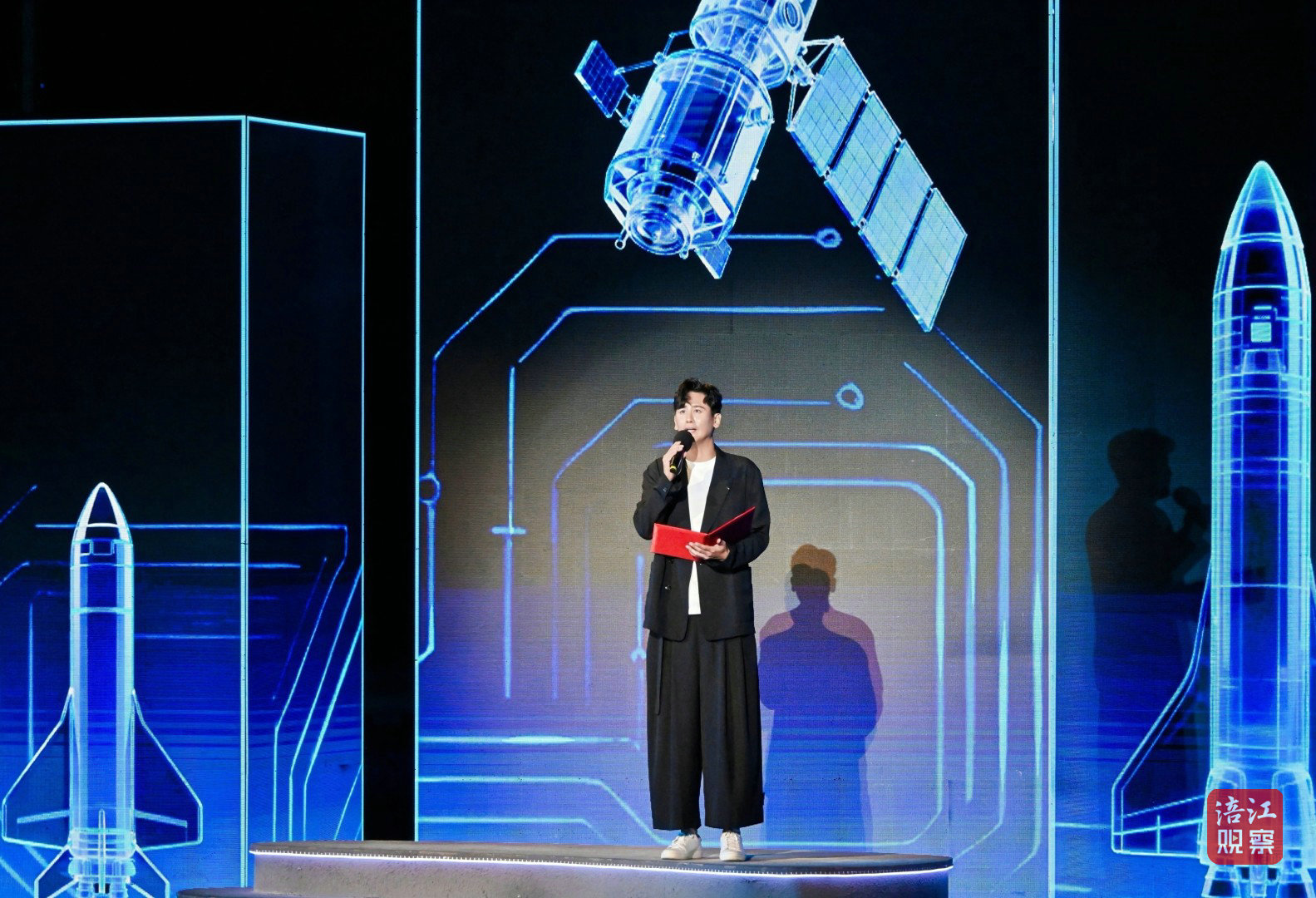 此次活動的舞臺設計堪稱一大亮點。超1000平方米的水上舞臺融入了LED屏幕、激光投影、AI、機械裝置、無人機等多種技術手段,為觀眾打造了一場全新的視聽盛宴。