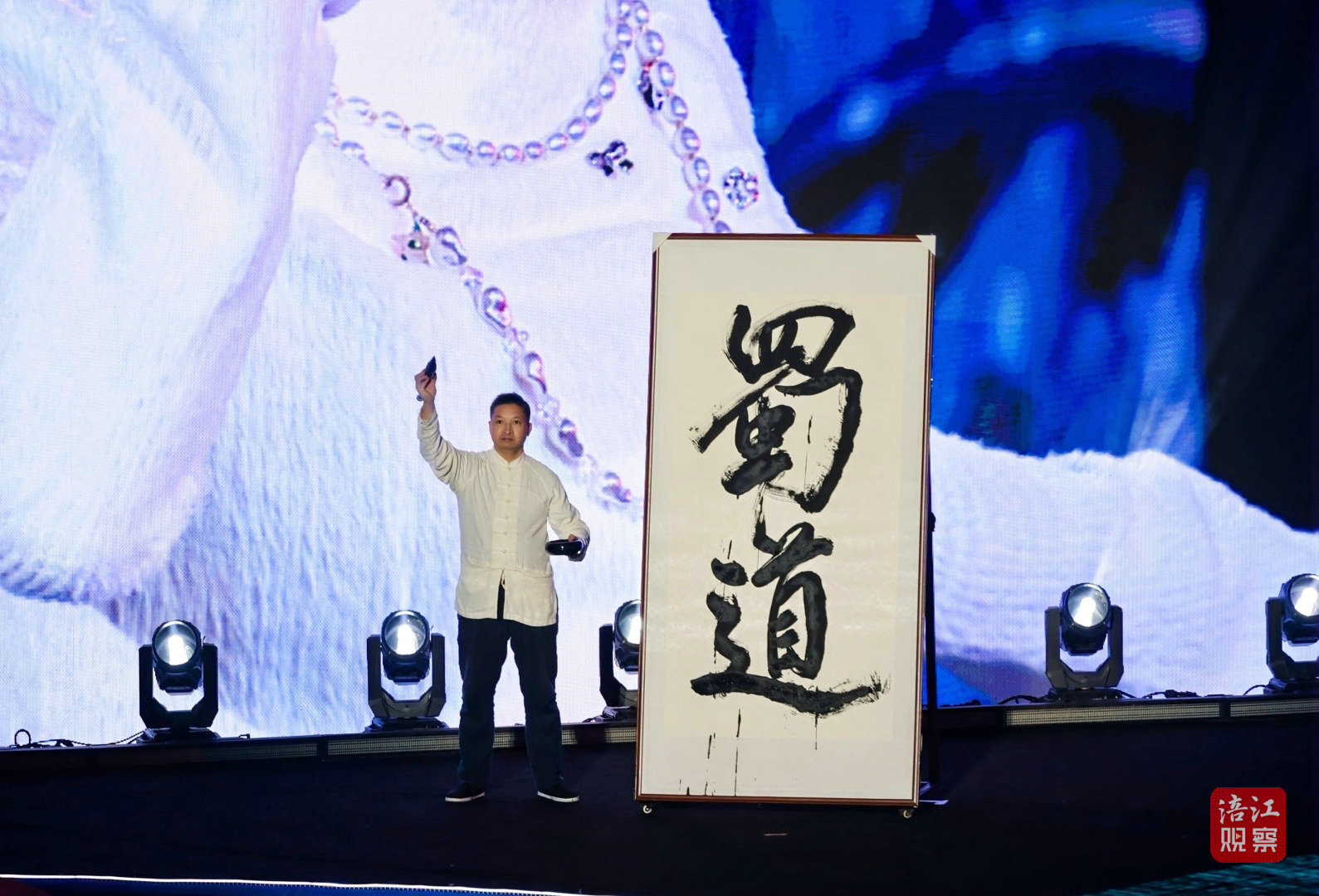 當舞臺背景切換為翠云廊的壯麗景色時,觀眾仿佛置身于那片綠意盎然的古蜀道中,感受著歷史的厚重與自然的魅力。
