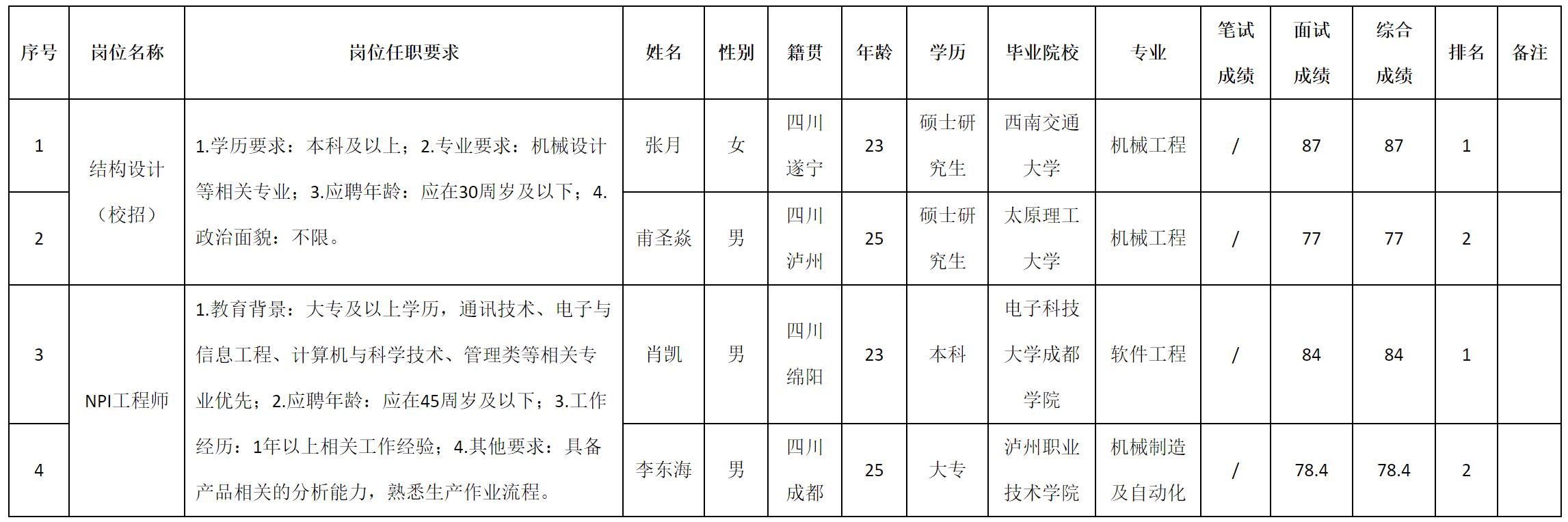 根據四川九州電子科技股份有限公司發布的招聘公告及招聘相關規定,現將測試成績予以公示。