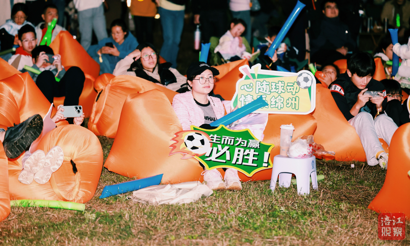 “在這里觀看比賽,聆聽音樂,這種體驗太爽了!”市民劉生華和家人坐在露營帳篷內,一邊跟著旋律輕唱,一邊緊盯賽場攻防。