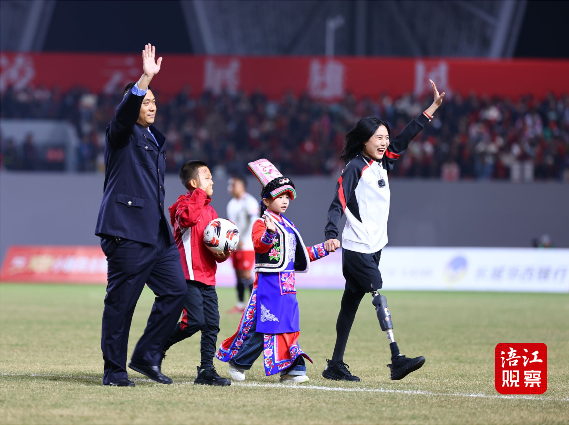 “鋼腿女孩”牛鈺、北川民警王鵬,攜手為川超綿陽主場開球