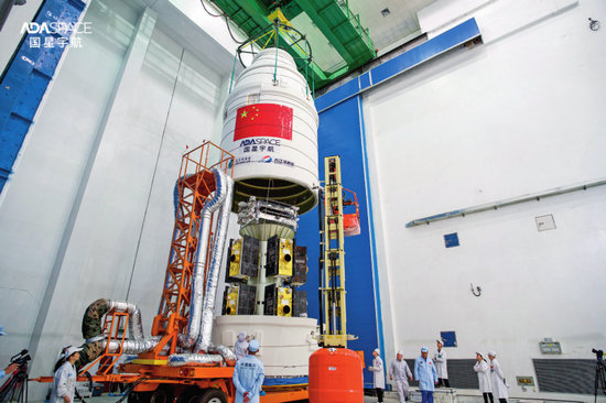國星宇航將太空計算星座021任務(wù)12顆計算衛(wèi)星發(fā)射升空,圖為12星在箭上排布(2025年5月攝)國星宇航供圖