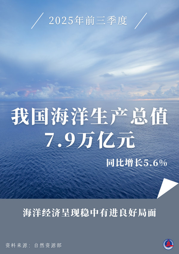 新華社北京11月3日電(記者 王立彬)今年前三季度,我國海洋生產(chǎn)總值7.9萬億元,同比增長5.6%,海洋經(jīng)濟呈現(xiàn)穩(wěn)中有進良好局面。