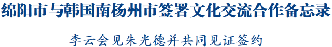 11月6日,綿陽市與韓國南楊州市簽署文化交流合作備忘錄。綿陽市委副書記、市長李云會見南楊州市市長朱光德,并共同見證簽約。