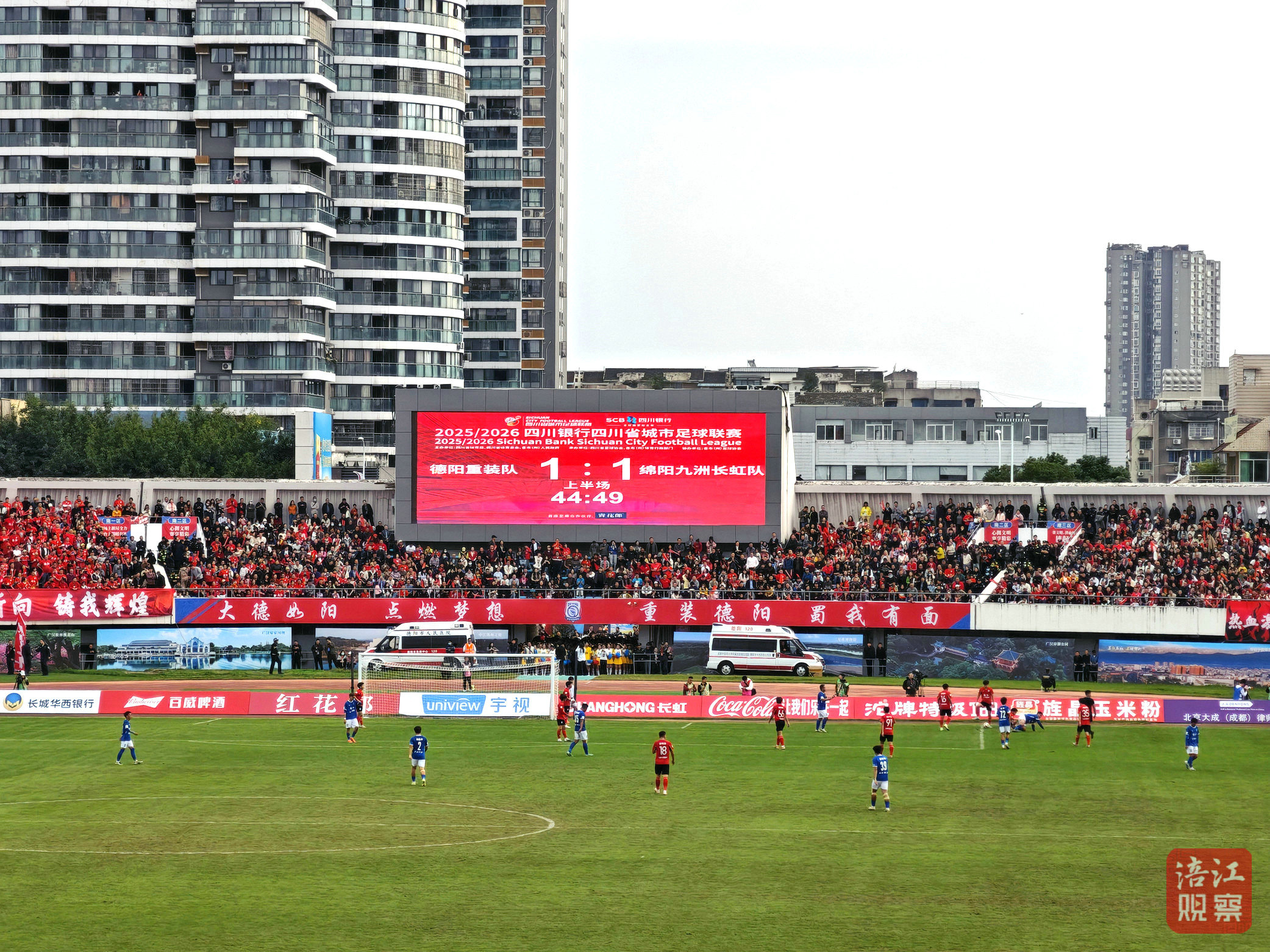 11月9日下午3點(diǎn),綿陽(yáng)九洲長(zhǎng)虹隊(duì)客場(chǎng)對(duì)陣東道主德陽(yáng)重裝隊(duì)的比賽,在德陽(yáng)市體育公園體育場(chǎng)精彩上演,兩地球迷齊聚現(xiàn)場(chǎng),共同見(jiàn)證這場(chǎng)綠茵盛宴。